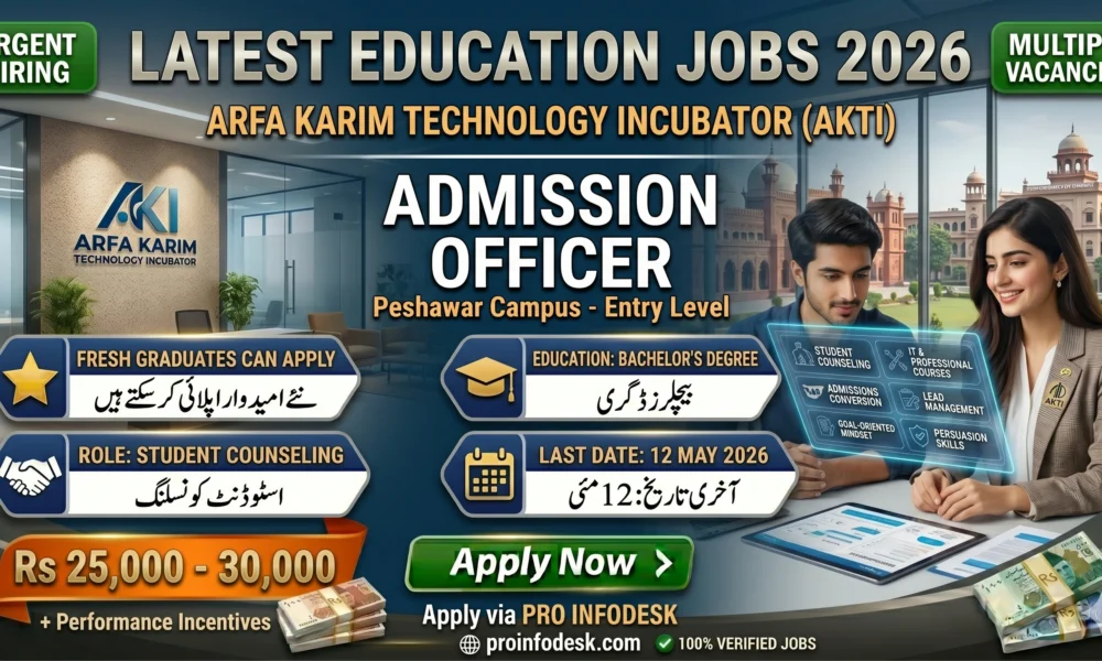 Arfa Karim Technology Incubator (AKTI) in Peshawar seeks an Admission Officer for a full-time entry-level role. Ideal for those exploring jobs in Peshawar, this position is...