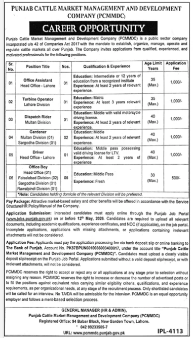 Explore Punjab Cattle Market Management & Development Company Jobs 2026