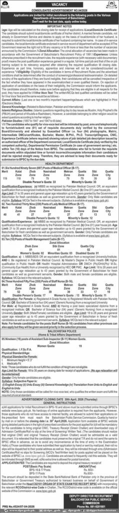 The Balochistan Public Service Commission (BPSC) has officially released its much-awaited Consolidated Advertisement No. 04/2026. This announcement brings excellent news for thousands of job seekers across the province, offering a wide array of permanent government positions in the Health Department and the Balochistan Police (Home & Tribal Affairs Department).